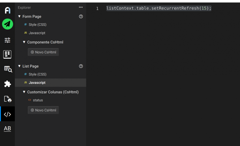 Exemplo de como ficaria a configuração para atualizar a cada 15 segundos na listagem de um Formulário